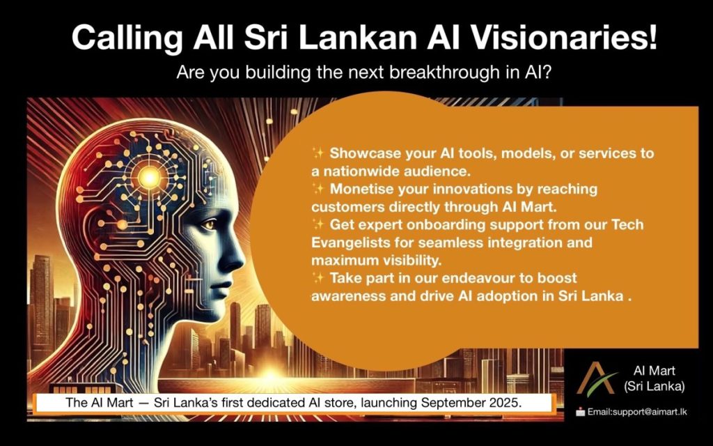 The AI Mart is designed as a one-stop solution for AI enthusiasts, professionals, and companies in Sri Lanka. Customers will have access to cutting-edge AI tools, smart devices, machine learning solutions, and AI consultancy services, bridging the gap between global innovation and domestic adoption.